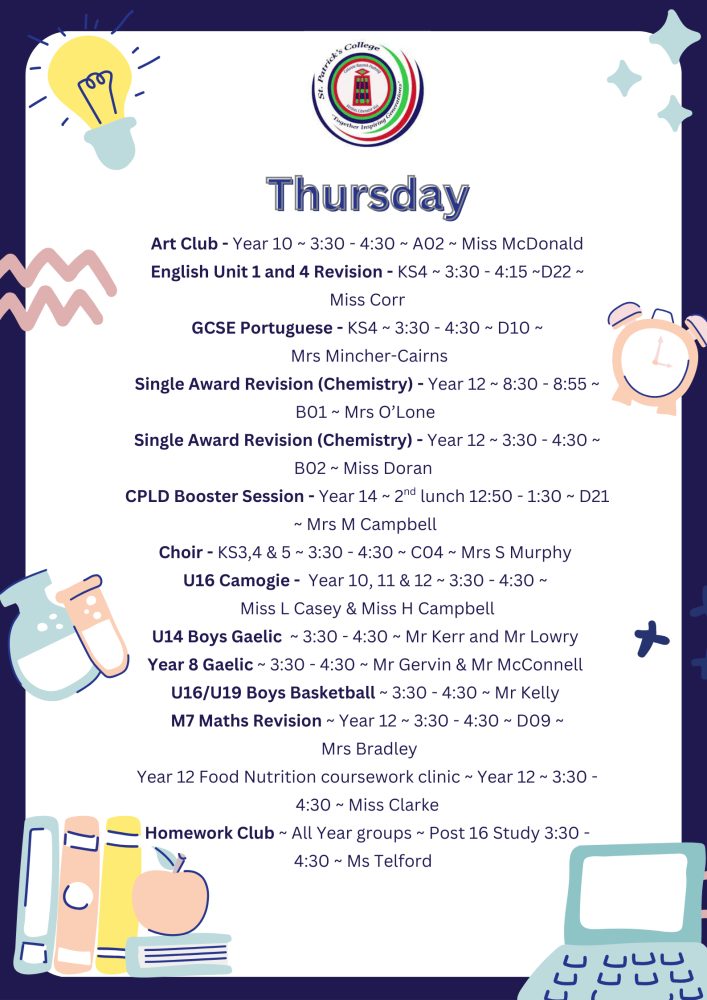 Telephone: 028 8772 2205      Email: info@stpatrickscollege.dungannon.ni.sch.uk